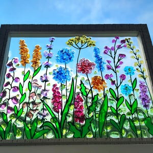 Wildflower Crushed Glass Resin Art Suncatcher: Botanical Window Decor